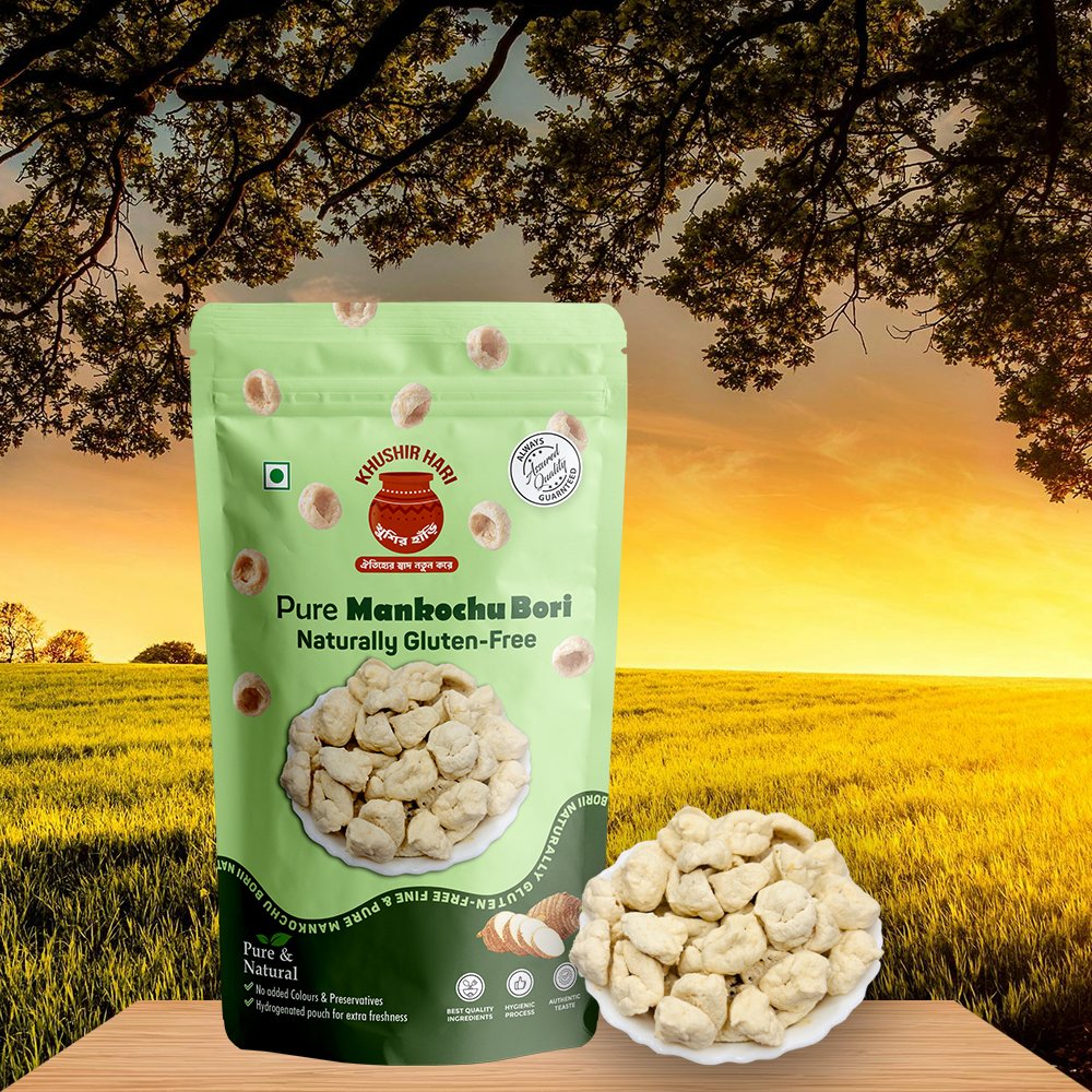 Discover the authentic flavor of Bengal with Khushir Hari Mankochu Bori, made from fresh mankochu (taro stem) and premium-quality urad dal, following traditional home-style preparation. Carefully handcrafted and sun-dried, these boris bring rich taste, aroma, and nostalgia to everyday Bengali cooking.